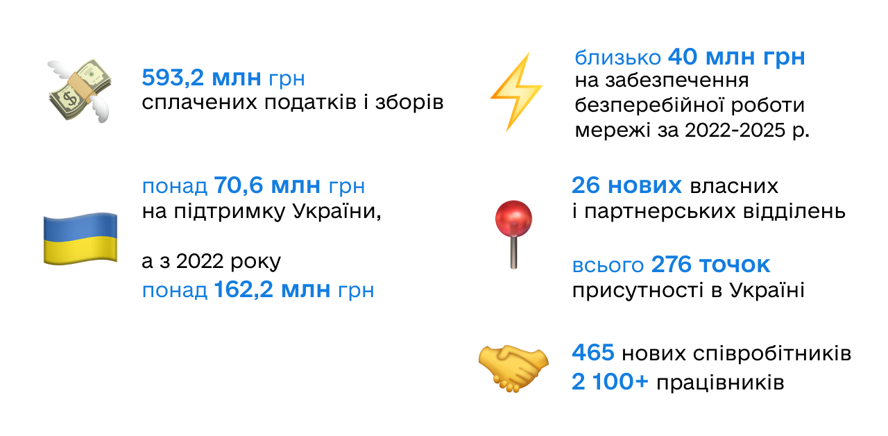 • Партнерство з благодійними фондами - 6,1 млн грн. Серед ключових партнерів: Фонд Сергія Притули, Патронатна служба «Янголи», 97 Фундація, БФ «Фріда», ГО «Агенти крові».