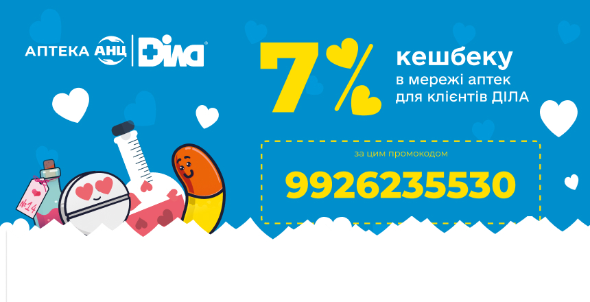 Щоб допомогти вам комфортно пройти кінець зими, ДІЛА спільно з аптечною мережею АНЦ дарує вигоду — 7% кешбеку за покупки в аптеках АНЦ, Копійка та ШАР@ з 1 по 28 лютого.