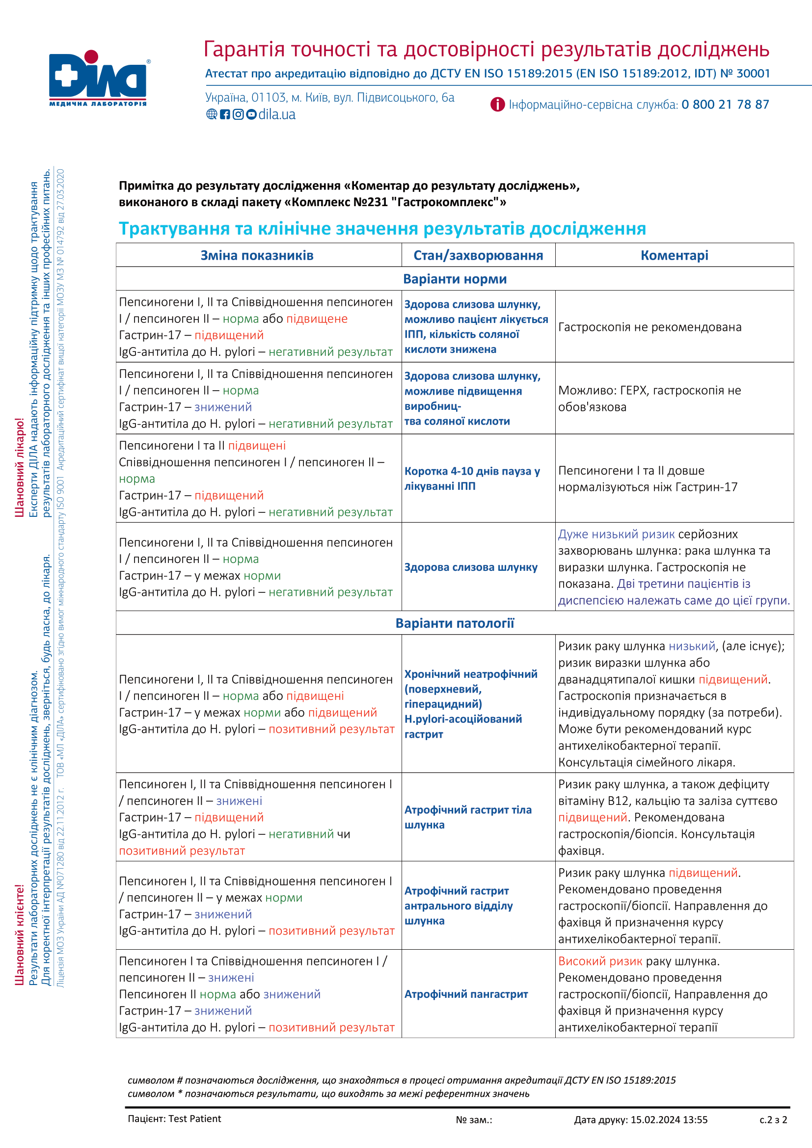 Комплекс №231 Гастрокомплекс — это комплексное исследование крови, включающее такие маркеры как: пепсиноген I и II, соотношение пепсиноген I к пепсиноген II, гастрин-17 количественно, и Хеликобактериоз, Helicobacter pylori, антитела IgG.