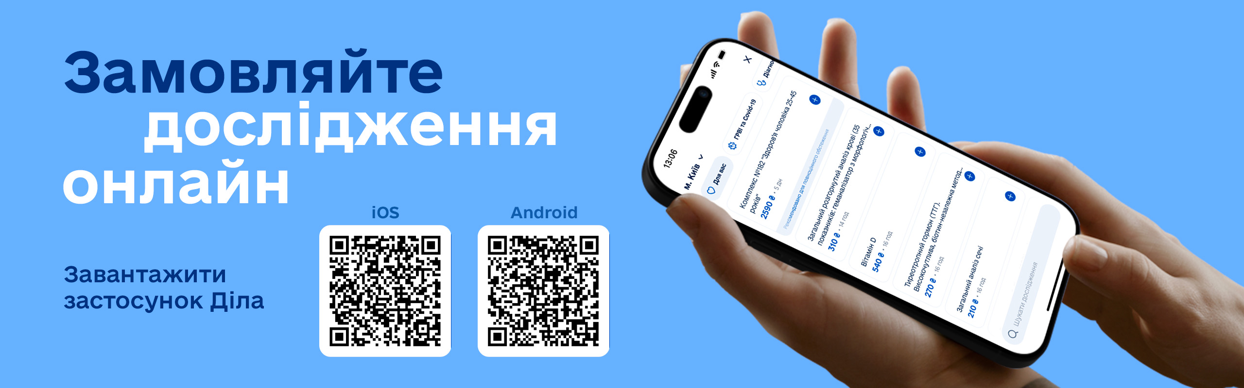 Піклуватися про здоров'я стало простіше, ніж будь-коли. Замовляйте дослідження для себе та рідних, отримуйте результати та рекомендації від експертів ‒ прямо у телефоні.