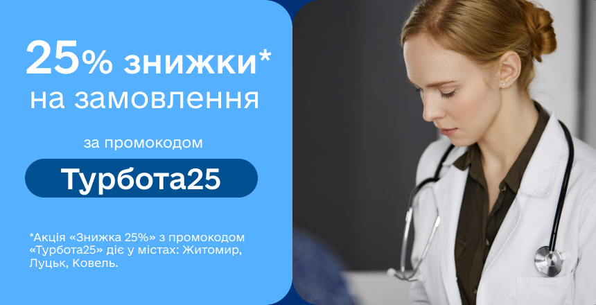 Повідомте пацієнту, що знижка діє лише у відділеннях Діла міст: Житомир, Луцьк, Ковель
